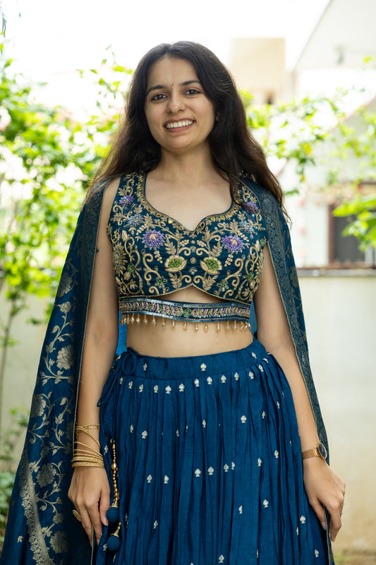 Regular price Rs. 4,999.00Regular priceUnit price / perSale price Rs. 4,999.00Midnight Phool Print Lehenga Set