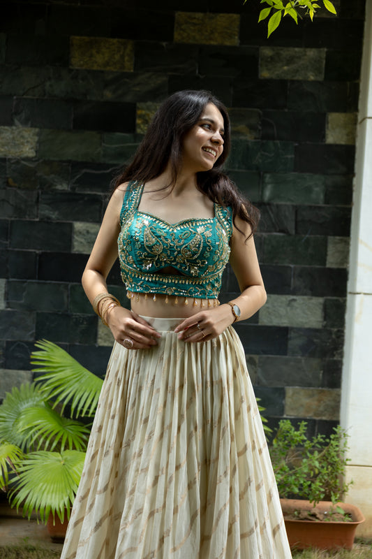 Regular price Rs. 4,999.00Regular priceUnit price / perSale price Rs. 4,999.00Mint Meadow Handwork Lehenga