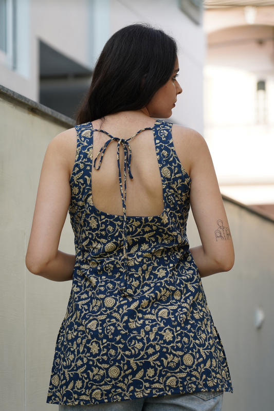 Blue Gold Paisley Block Print Kurti