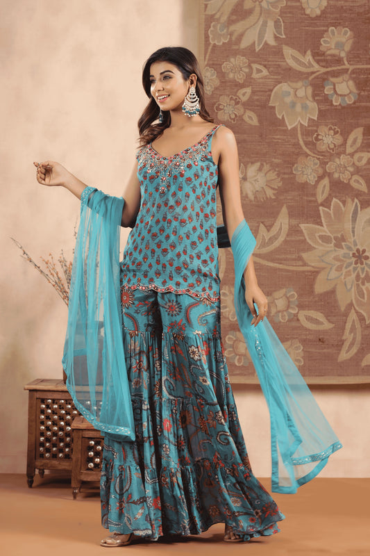 Azure Blossom Indo Western Set