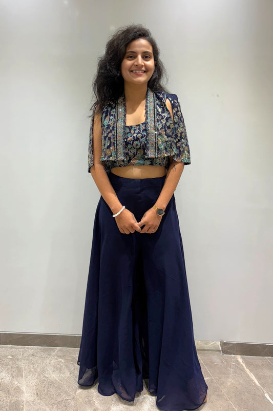 Regular price Rs. 4,295.00Regular priceUnit price / perSale price Rs. 4,295.00Embroidered Noir Palazzo Ensemble
