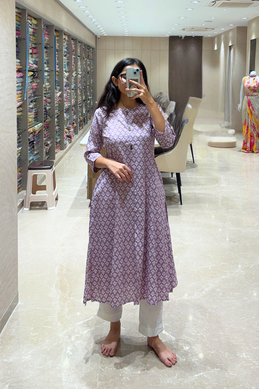 Regular price Rs. 895.00Regular priceUnit price / perSale price Rs. 895.00Lavender Cotton Printed Kurta Set