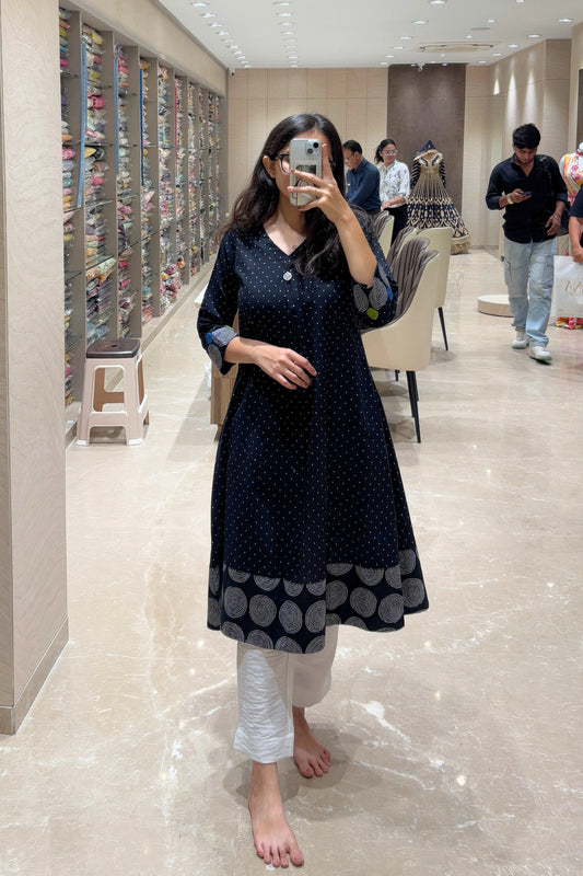 Regular price Rs. 1,095.00Regular priceUnit price / perSale price Rs. 1,095.00Midnight Charm Polka Kurta Set
