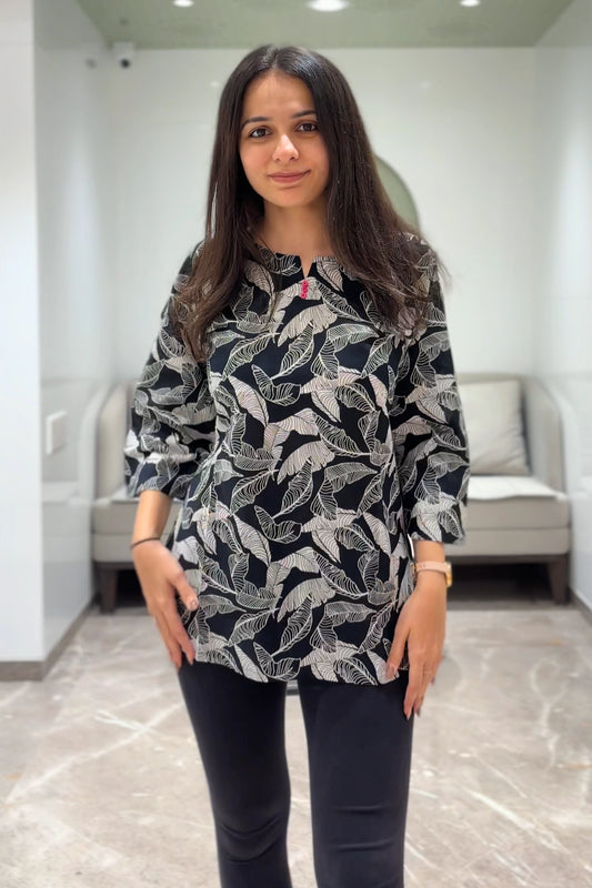 Regular price Rs. 599.00Regular priceUnit price / perSale price Rs. 599.00Monochrome Leaf Elegance Tunic
