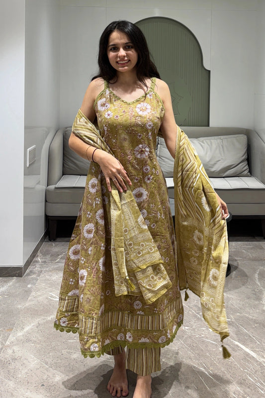 Regular price Rs. 1,795.00Regular priceUnit price / perSale price Rs. 1,795.00Golden Olive Floral Suit Set