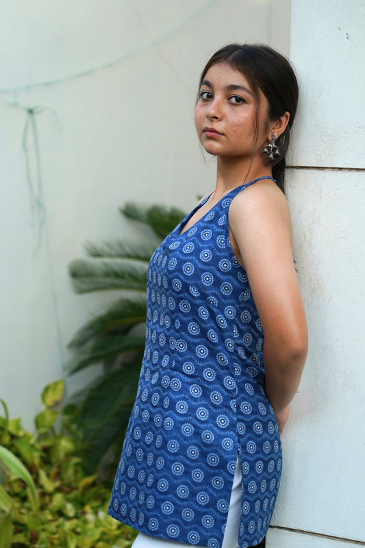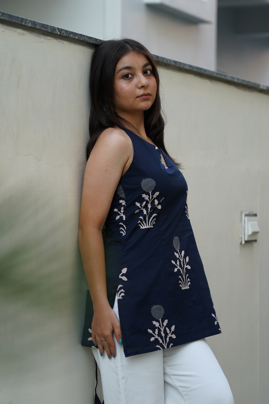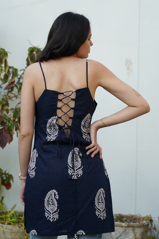 Regular price Rs. 899.00Regular priceUnit price / perSale price Rs. 899.00Navy Circular Medallion Halter Kurti