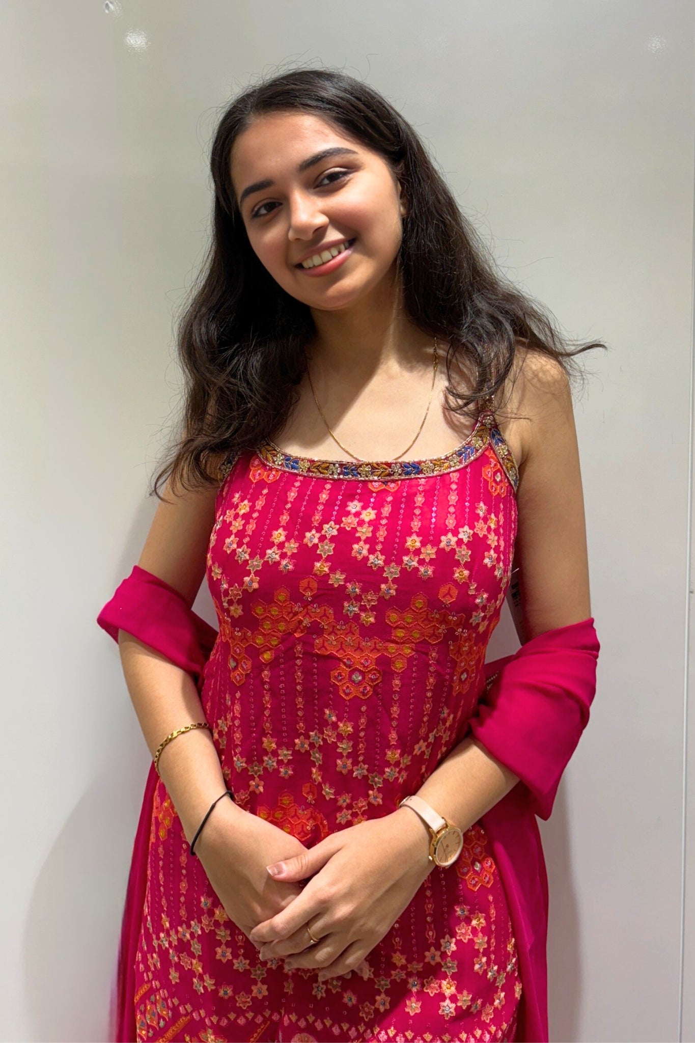 Bottom Details: A voluminous sharara-style bottom that enhances the outfit’s graceful flow, paired with a matching dupatta for a complete look.